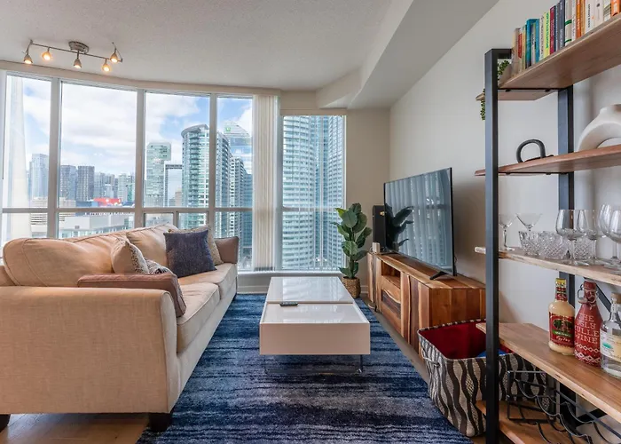 Toronto Views ~ Pool ~ Bbq ~ Harbourfront ~ Wifi Appartement van 60 m^2 verwelkomt reizigers in het hart van Toronto, op 18 minuten wandelen van de Markt van St Lawrence. Een van de hoogtepunten van dit appartement is een terras, waar gasten kunnen genieten van het uitzicht op de stad.